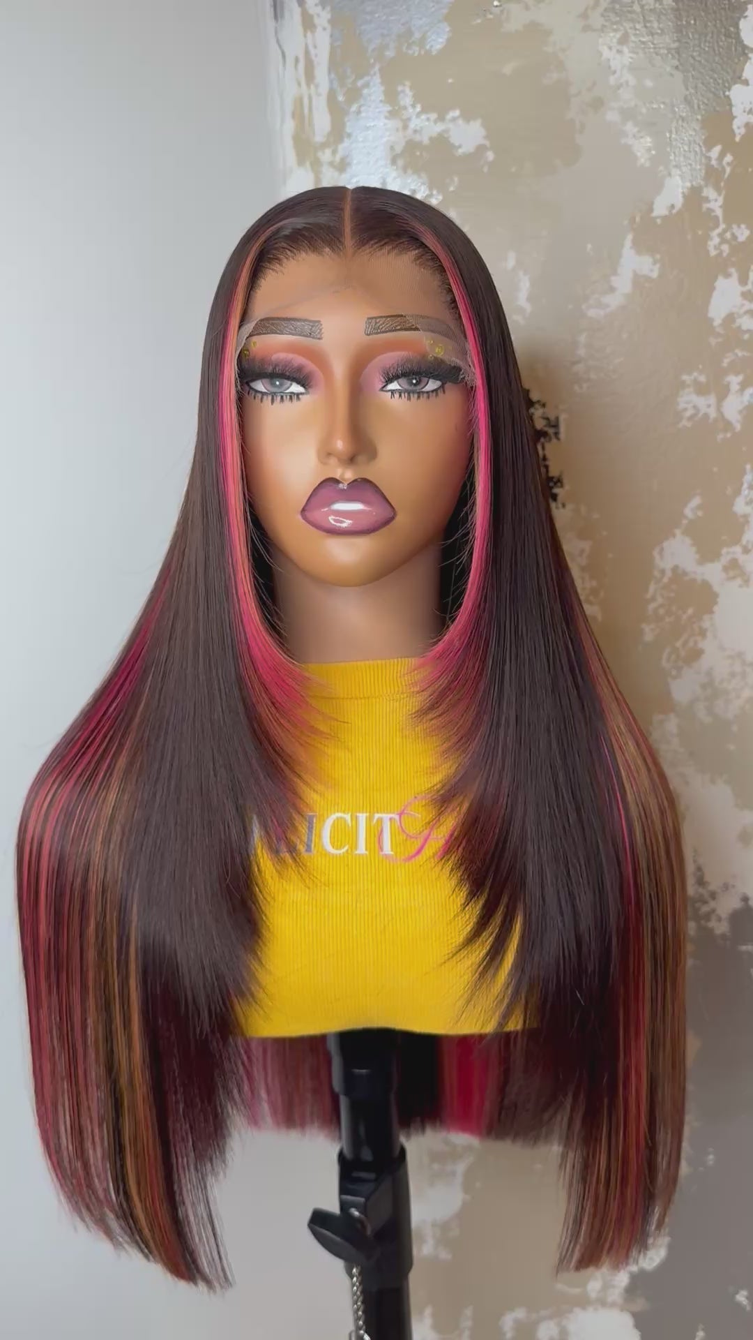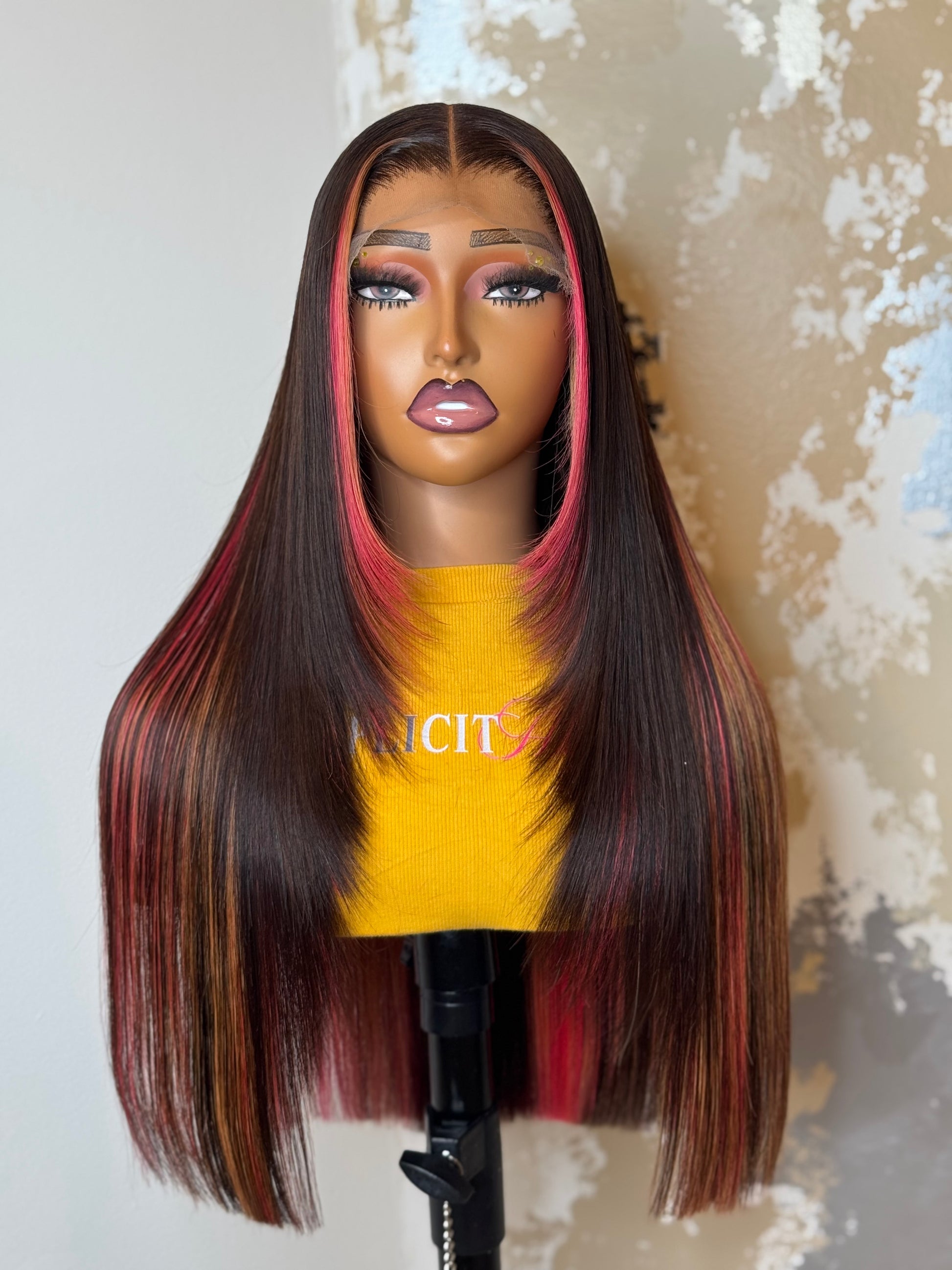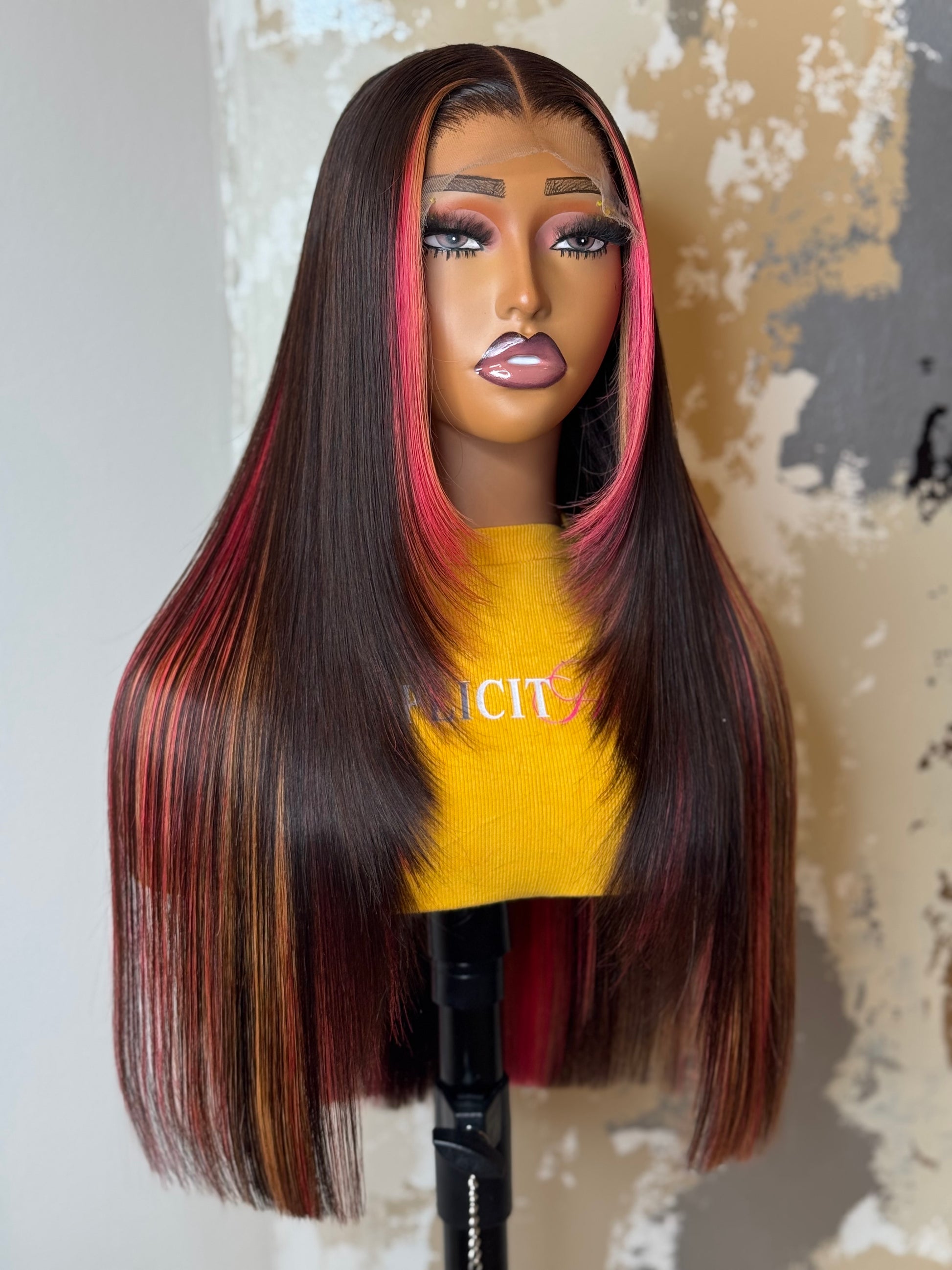 Color: Brown Base with Pink and Blonde Highlights