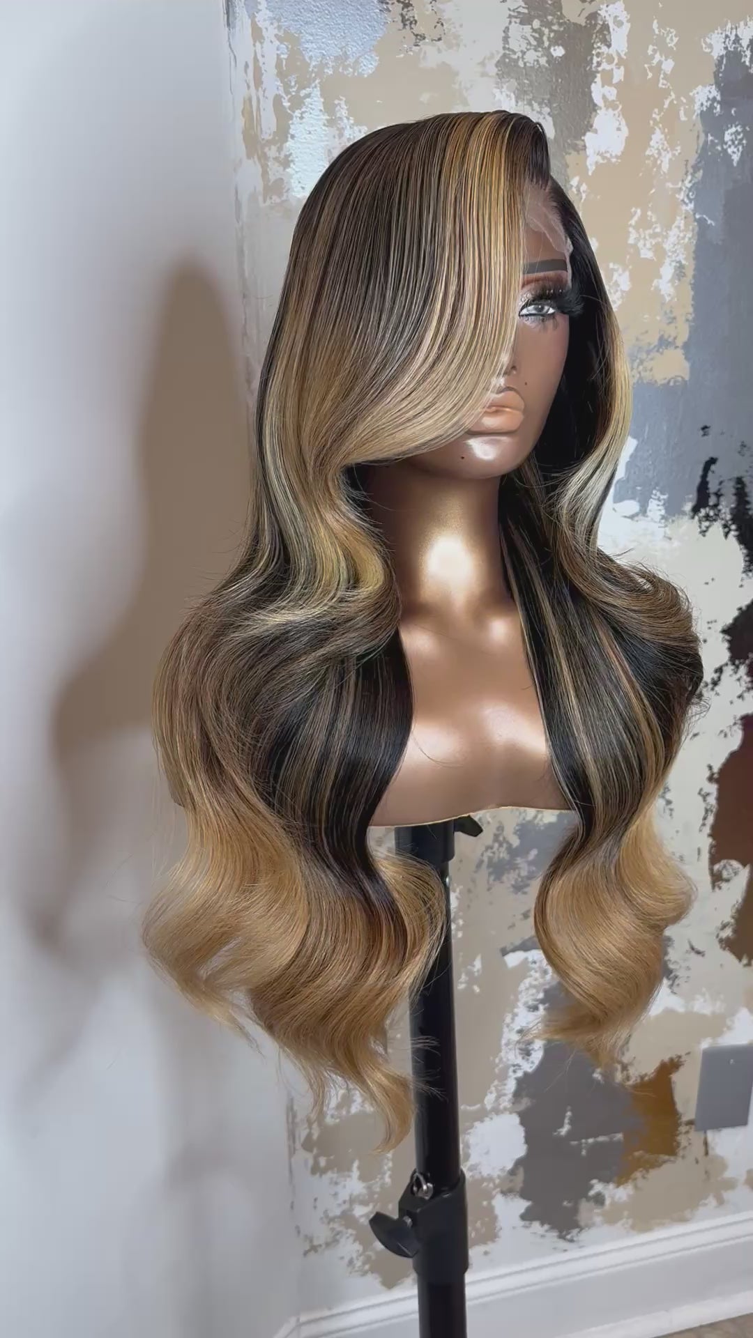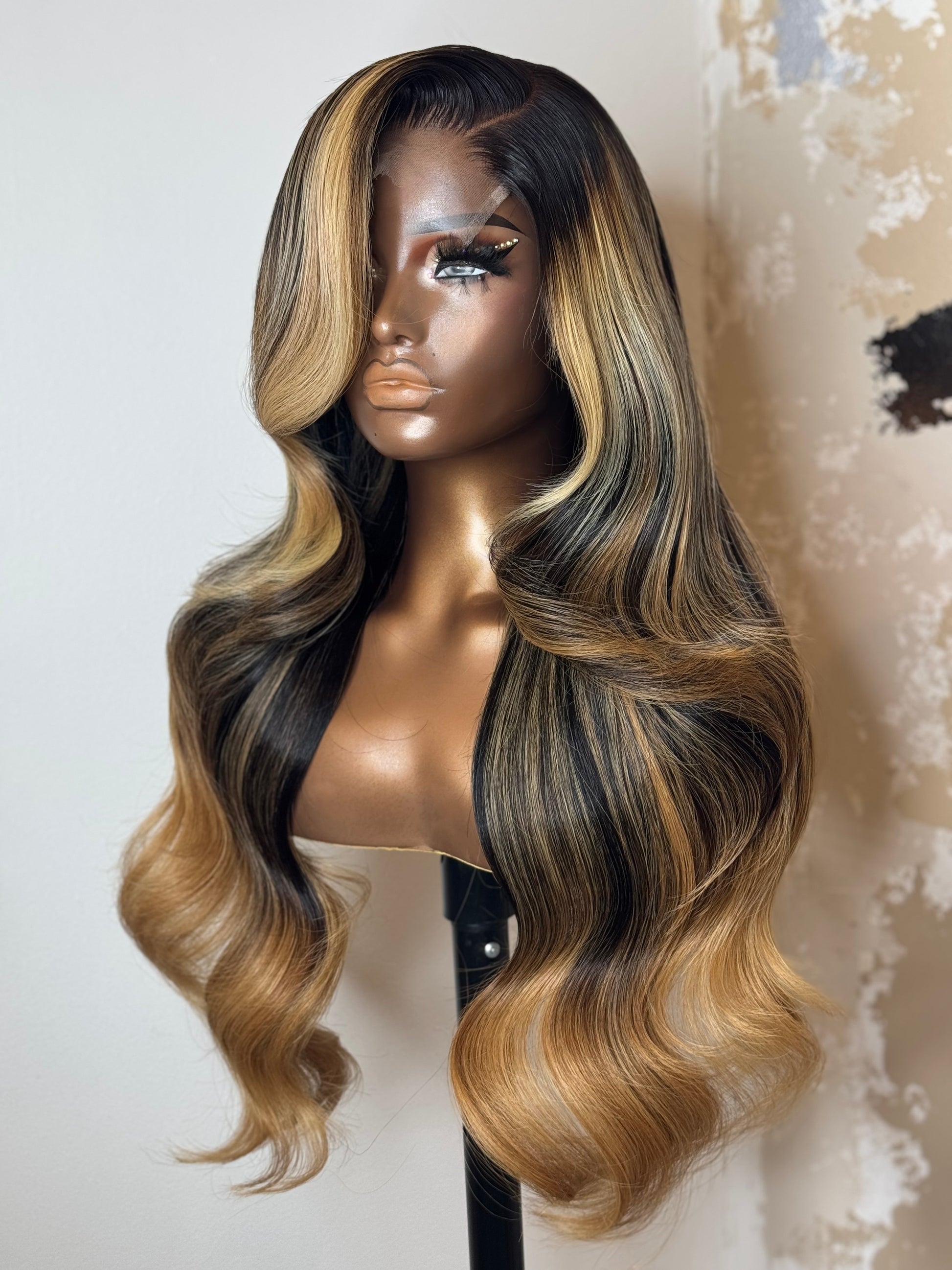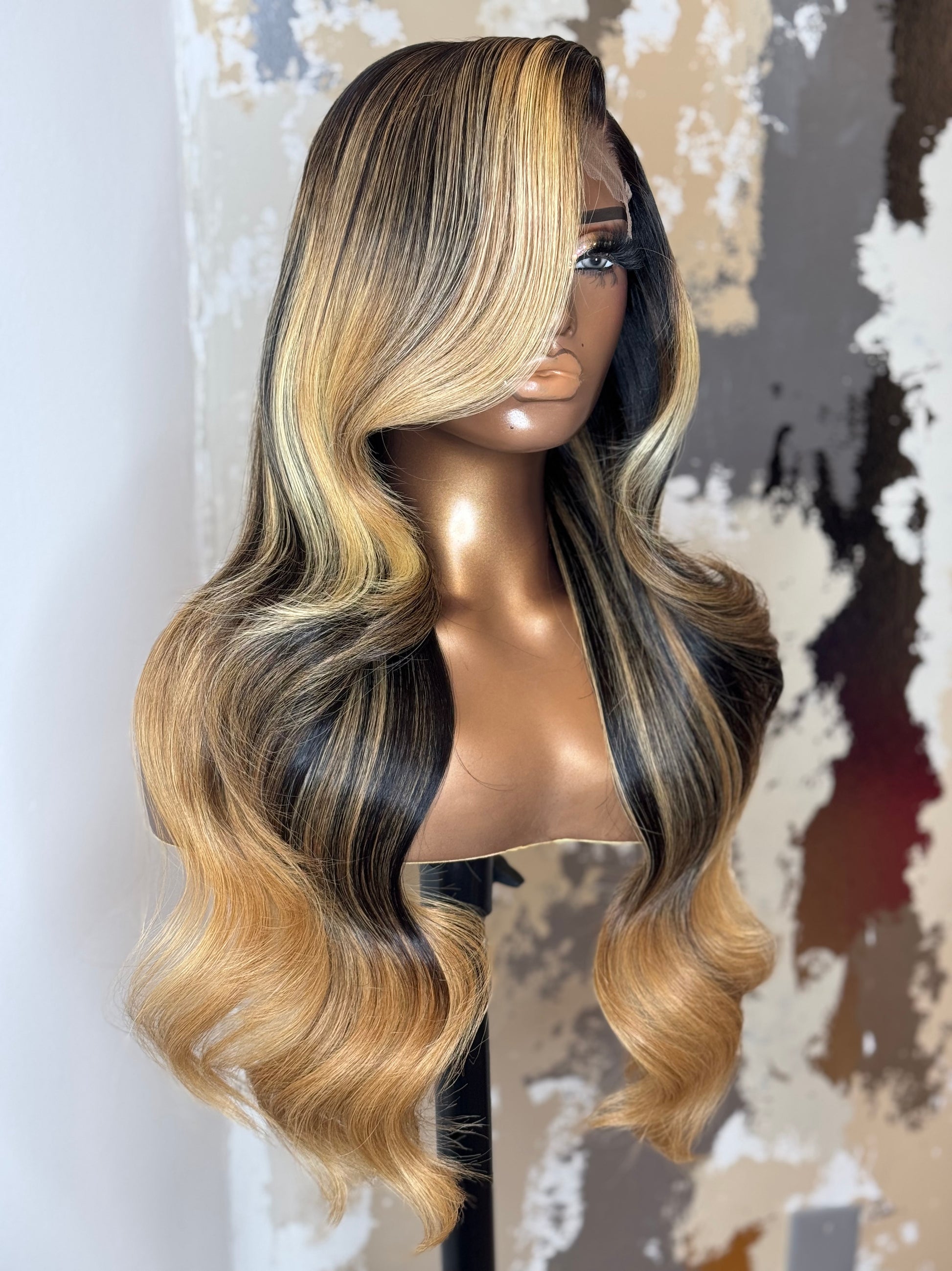 Color: Natural 1B with multicolored highlights and ombré blonde at the bottom.